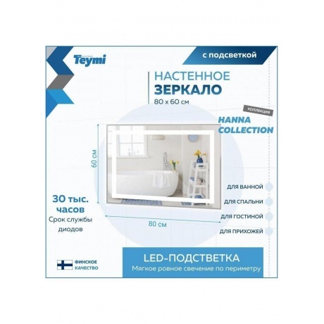 • Зеркало Teymi Hanna 80х60, LED подсветка T20251 - фото 16