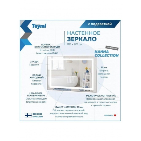 Отзывы о товаре Зеркало Teymi Hanna 80х60, LED подсветка T20251