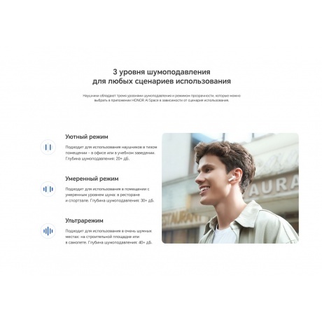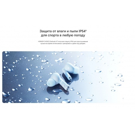 Наушники TWS Honor Choice Earbuds X7 выполнены в корпусе с защитой от влаги и пыли по стандарту IP54. Мягкие силиконовые амбушюры трех размеров обеспечивают комфортную фиксацию в слуховом канале. Композитные динамики с диаметром мембраны 12.4 мм и титановым покрытием диафрагмы воспроизводят чистый звук с глубоким басом. Два микрофона четко передают голос при разговорах. Технология гибридного шумоподавления устраняет отвлекающие внешние звуки громкостью до 45 дБ. Сенсорными кнопками можно отвечать на звонки и завершать разговор, переключаться между режимами шумоподавления. Одного заряда встроенного в каждый наушник Honor Choice Earbuds X7 аккумулятора хватает до 7 часов прослушивания музыки. Вместе с зарядным футляром время автономной работы составляет 40 часов.