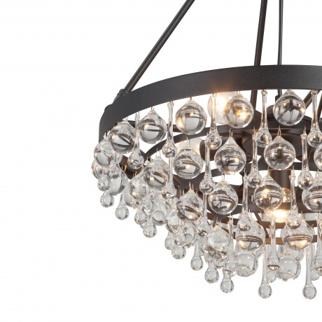 чёрная потолочная подвесная люстра с каскадом подвесок капли, 5 ламп, цоколь e14, максимальная мощность лампы 40 вт, размеры 50x56,5x50 см, вес 8,6 кг.