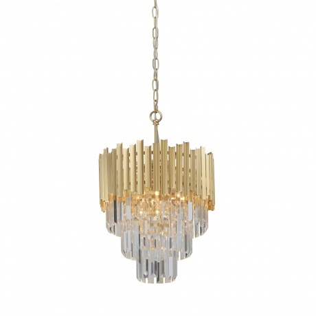 люстра потолочная vitaluce v58471-8/5 на 5 ламп с цоколем e14 и максимальной мощностью 40вт. материал плафонов — хрусталь, каркас золотистого цвета. подвесная конструкция с регулируемой высотой (точные параметры не указаны). подходит для создания яркого освещения в интерьерах гостиных или других помещений. декоративные элементы и стиль в описании не уточняются.