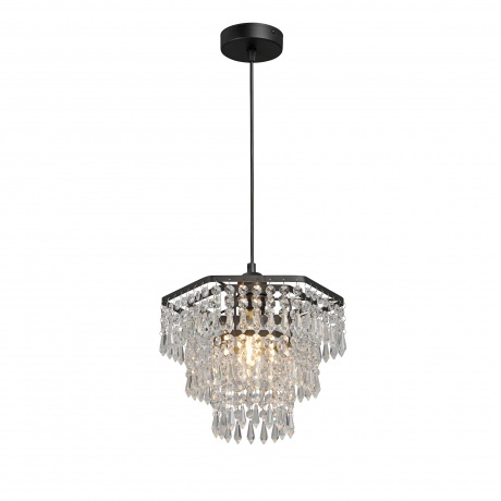 подвесной светильник vitaluce v5883-1/1s выполнен в стиле хрусталь, имеет чёрный матовый каркас и прозрачный плафон из хрусталя, высота 137 см, ширина 29 см, вес 1.59 кг, мощность лампы до 40 вт, тип цоколя e27.