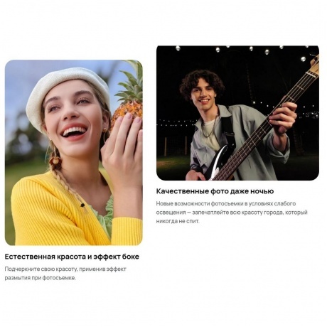 Смартфон HUAWEI nova 12s представлен в белом пластиковом корпусе с безрамочным 6.7-дюймовым экраном. AMOLED-дисплей с поддержкой 1 млрд цветов отображает четкую и реалистичную картинку. Частота обновления 120 Гц сглаживает динамичные сцены игровой графики и видео. HUAWEI nova 12s с 256 Гб памяти оснащен 8-ядерным процессором с ОЗУ 8 Гб. Смартфон устойчив к перегреву и зависанию при одновременной работе в нескольких приложениях. Основная камера на 50 Мп автоматически распознает сцены, подстраивает резкость и передачу цвета. Вы можете записывать видео в 4K-формате, использовать разные режимы съемки. Фронтальная селфи-камера на 60 Мп дополнена стикерами дополненной реальности и другими интересными эффектами.