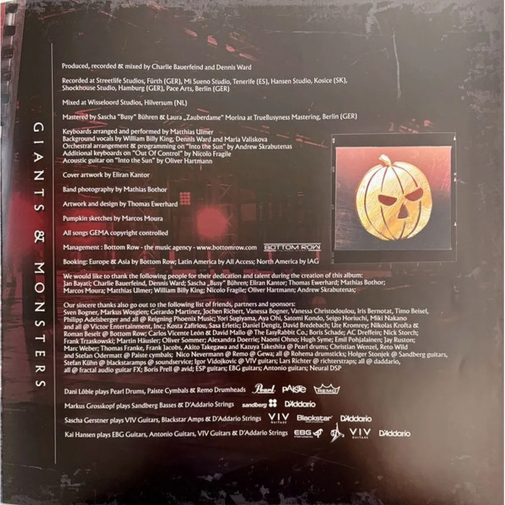 Имея за плечами 15 золотых и шесть платиновых наград, а также более десяти миллионов проданных пластинок, легенды немецкого пауэр-метала Helloween выпускают свой новый альбом «Giants & Monsters», отмечая 40-летие группы Уверенная в себе и полная энергии, группа представляет, пожалуй, самый разносторонний альбом в своей истории. Благодаря пяти талантливым авторам песен и семи музыкантам мирового класса, творческие ограничения раз и навсегда сняты с «Giants & Monsters». «В конце концов, мы всего лишь семь парней, которые хотят создавать музыку и наслаждаться ни с чем не сравнимой силой, которая возникает, когда мы вместе. Helloween сильнее, чем сумма его отдельных музыкантов». Без каких-либо компромиссов, альбом «Giants & Monsters» был сведён в легендарной студии Wisseloord, где записывались такие легенды метала, как Iron Maiden, Judas Priest и Def Leppard.