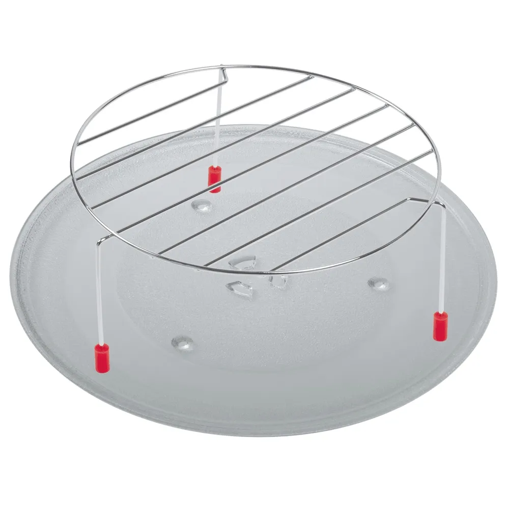 Про безопасность тоже подумали: есть блокировка от детей. Если дверь прибора закрыта, он просто не включится. В комплекте идет большая тарелка для поворотного стола диаметром 315 мм и решетка для гриля. Есть опция логичного выбора настроек и звуковой сигнал об окончании работы, который легко отключить.