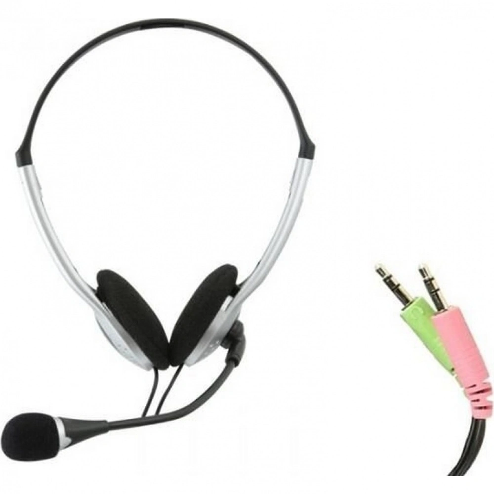 Компьютерная гарнитура с накладными наушниками, крепление при помощи оголовья, встроенный регулятор громкости, подключение: 2 x mini jack 3.5 mm