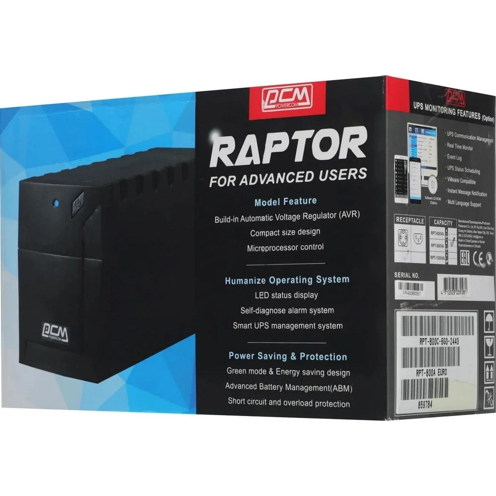 Купить ИБП Powercom Raptor RPT-800A EURO черный - по цене 5659 руб. в Волгограде с доставкой или самовывозом. Заказ можно оформить на нашем сайте kotofoto.ru или по телефону 8(812)426-98-99. Вы можете забрать товар в одном из пунктов самовывоза в Волгограде или оформить доставку на дом в удобное для Вас время.