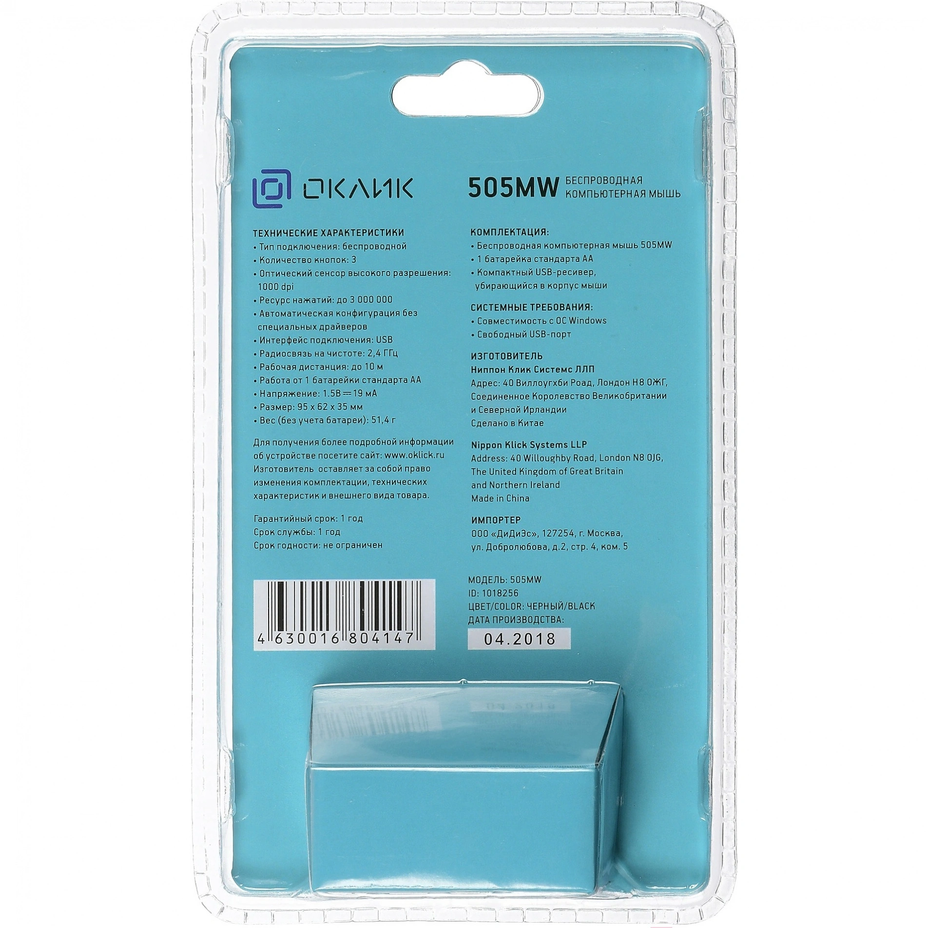 Мышь Oklick 505MW черный - описание товара, его характеристики, фото и цены представлены на карточке товара. Чтобы купить этот товар по цене 526 руб., свяжитесь с нами по телефону 8(812)426-98-99 в Волгограде, или оформите покупку через корзину.