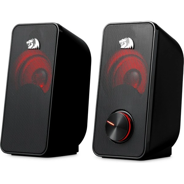 Колонки 2.0 Redragon Stentor выполнены в прочном пластиковом корпусе закрытого типа. Модель оснащена лаконичной подсветкой и отличается стильным дизайном. В сочетании с компактными размерами это позволит легко разместить колонки прямо у вас на рабочем столе или на полке. Для их подключения и питания используются разъемы USB и Jack 3.5 мм, отличающиеся совместимостью с различными устройствами. Управление громкостью звука осуществляется при помощи поворотного переключателя на лицевой панели колонок.