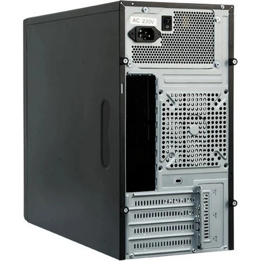 Корпус оснащен верхним расположением блока питания и имеет четыре слота расширения, что предоставляет дополнительные возможности при сборке системы. Для установки накопителей предусмотрено два внутренних отсека 3.5 дюйма и один отсек 2.5 дюйма, что позволяет организовать достаточное количество места для хранения данных.