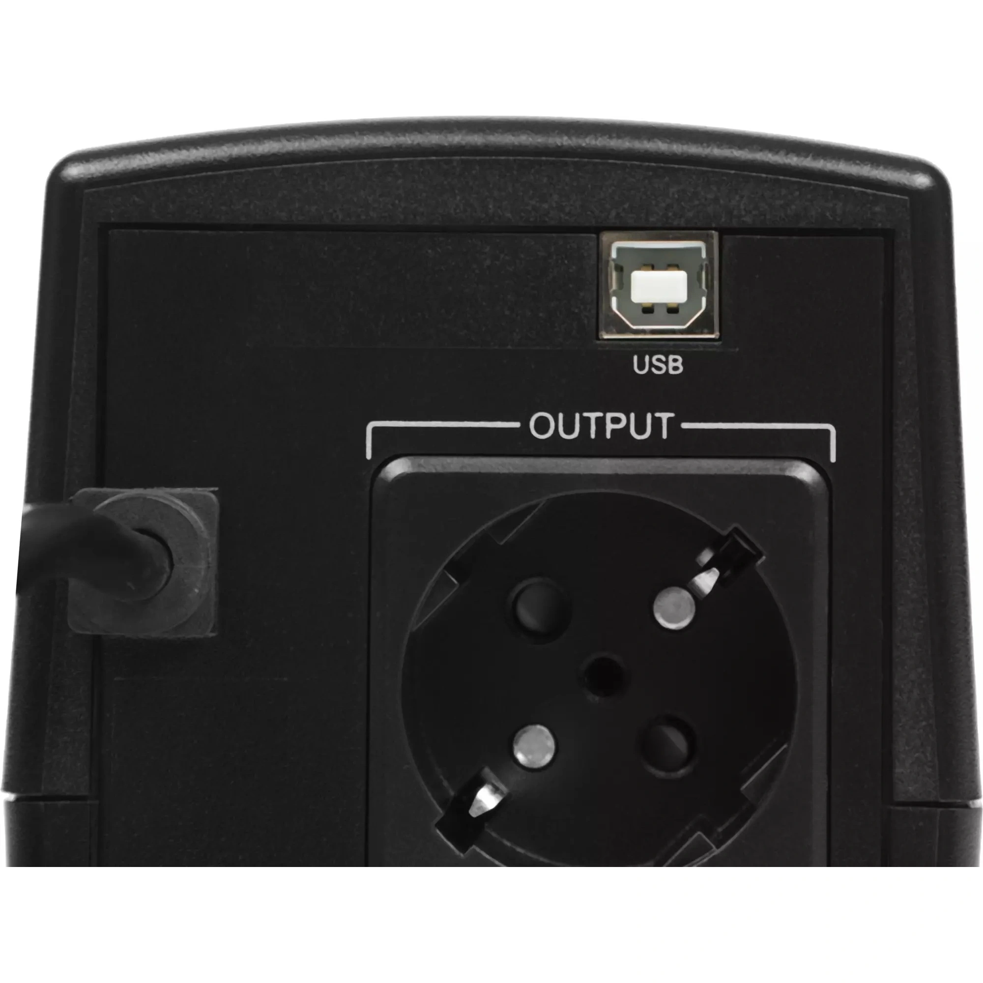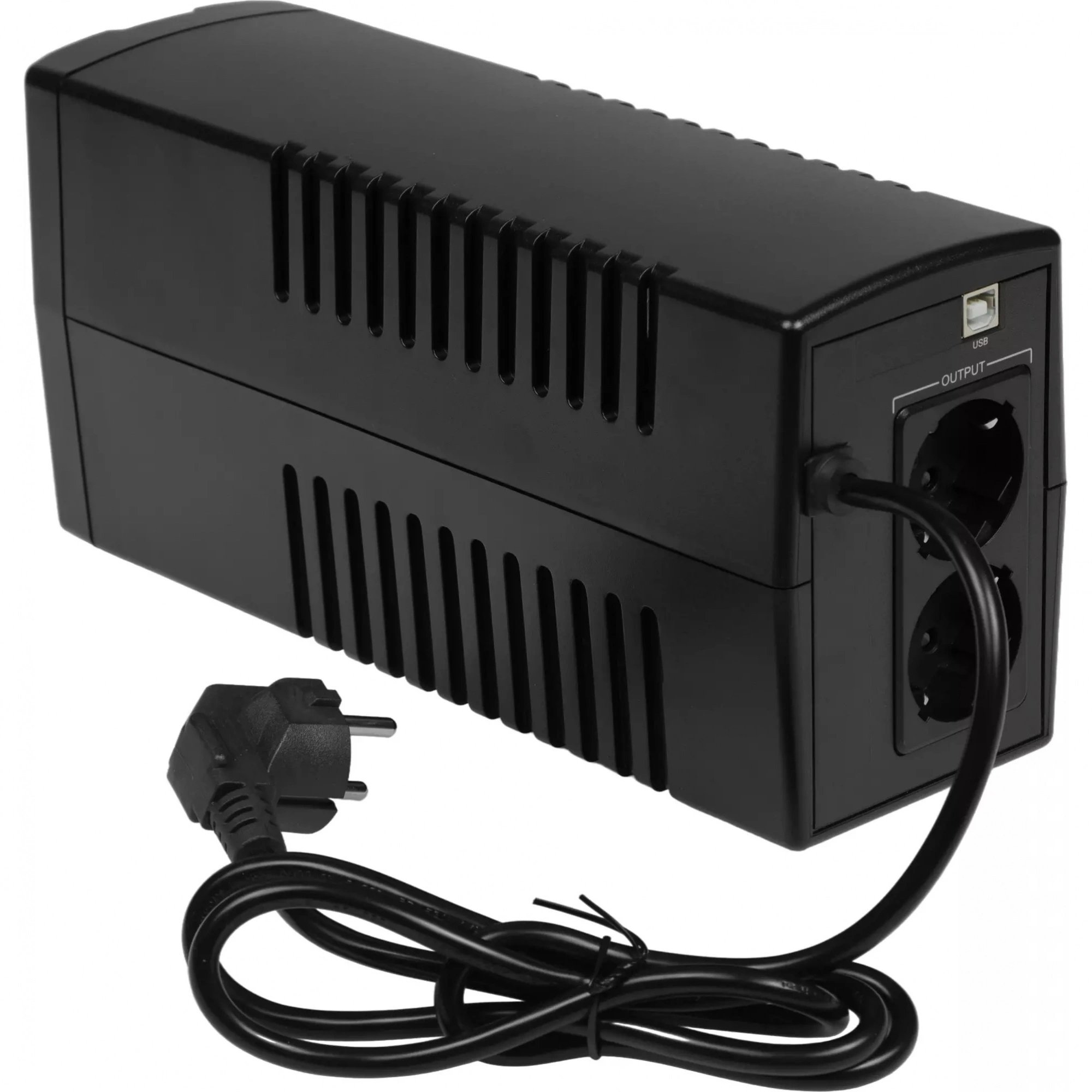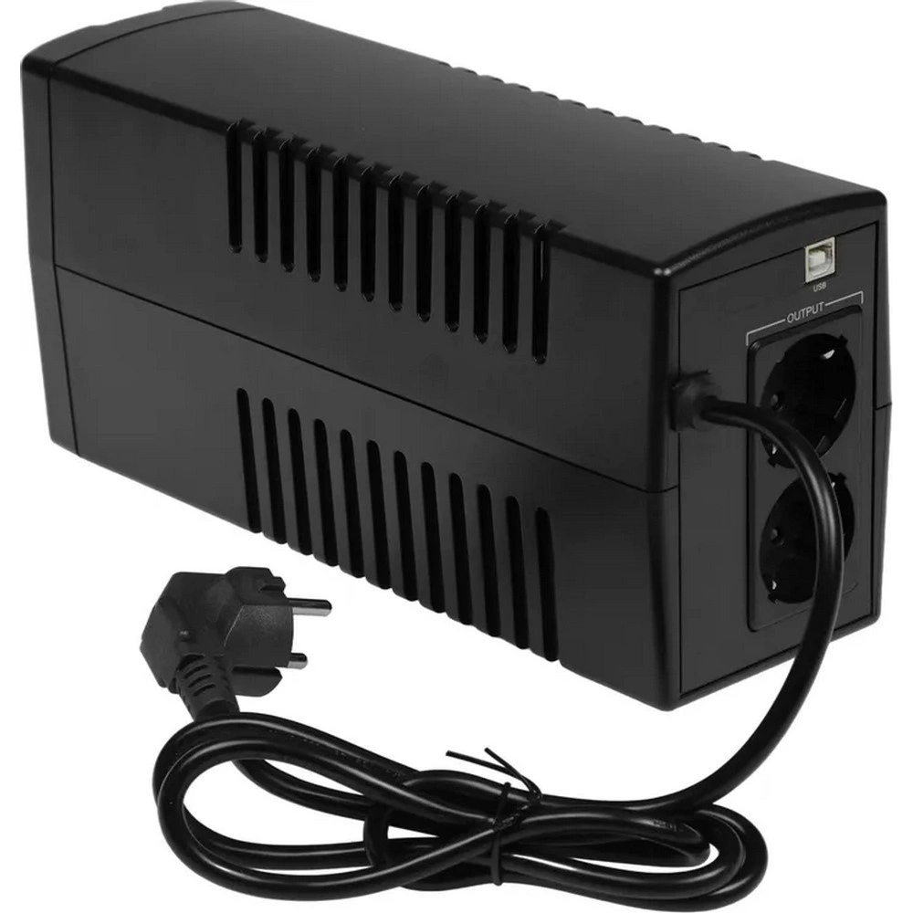 Вес устройства составляет 4,5 кг, что делает его достаточно легким для перемещения или установки. ИБП оснащен свинцово-кислотной батареей, которая обеспечивает до 1 минуты работы при полной нагрузке, что вполне достаточно для безопасного завершения работы или переключения на альтернативные источники питания.