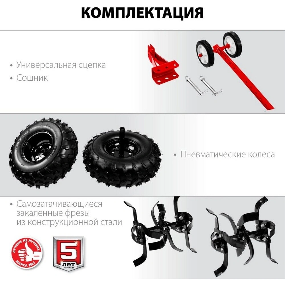Электрический двигатель мощностью 515 Вт обеспечивает дополнительную поддержку и удобство в управлении мотоблоком. Страна производитель – Россия, что гарантирует адаптацию техники к местным условиям эксплуатации и климату. Бренд ЗУБР известен высоким качеством и надёжностью своей продукции, что делает этот мотоблок отличным выбором как для профессиональных фермеров, так и для дачников-любителей.