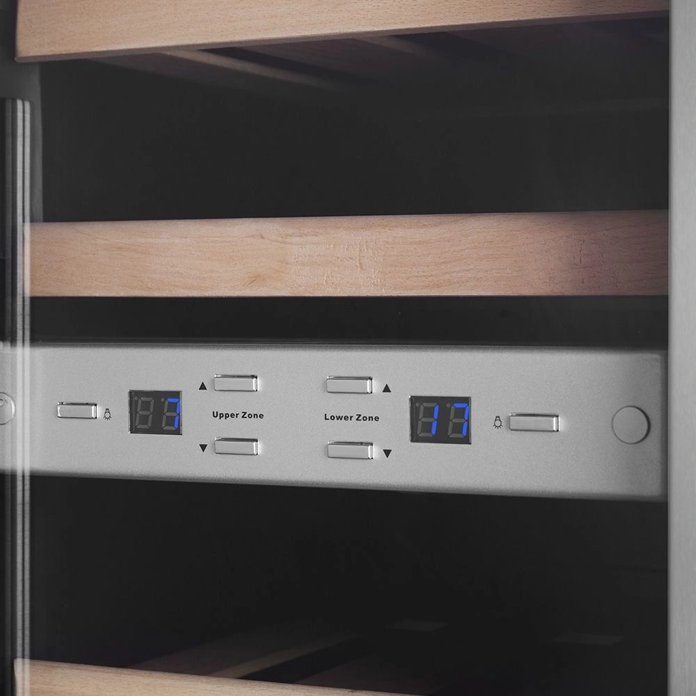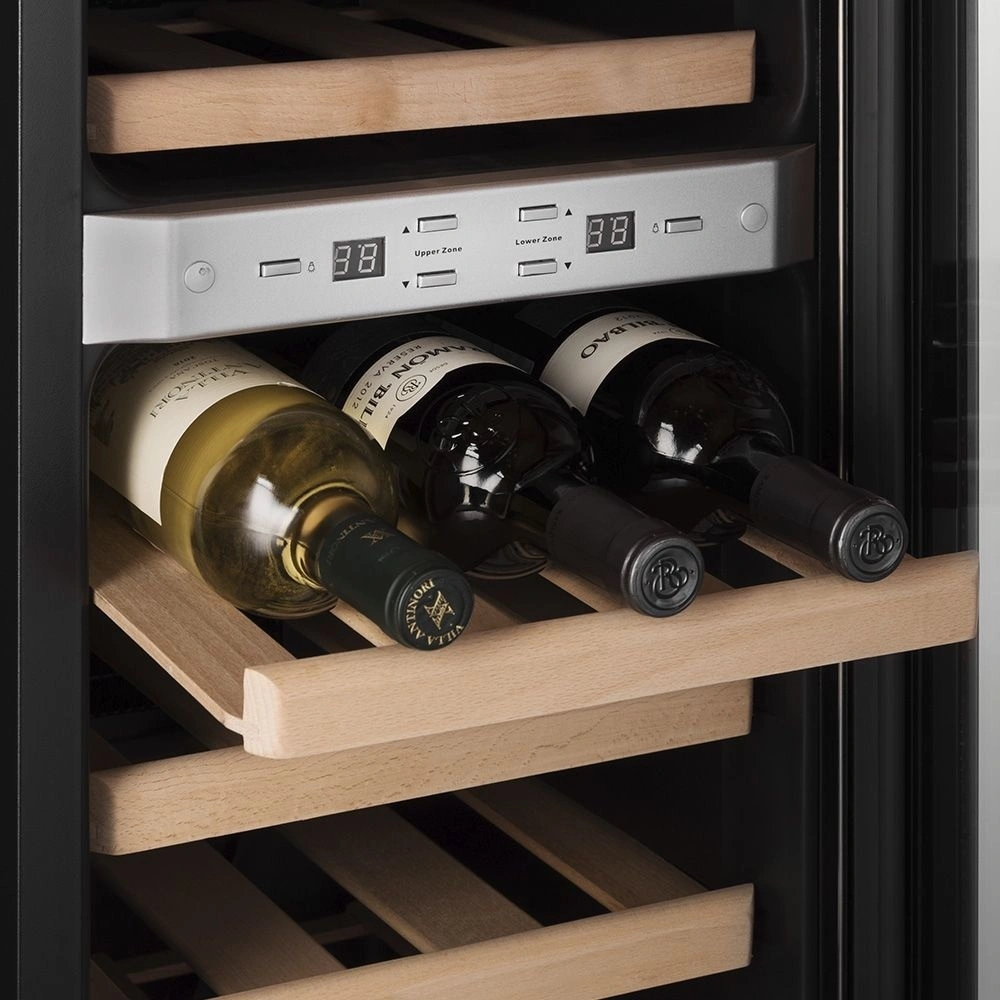 Холодильник Kitfort КТ-2406 состоит из двух камер для хранения красных и белых вин, требующих разных температурных режимов. В верхнем отделении возможно разместить шесть бутылок, в нижнем — 15. Полки изготовлены из дерева и имеют специальные прорези для удобной фиксации емкостей. При помощи LCD-дисплея задаются параметры отдельно для каждой камеры и включается подсветка.Холодильник Kitfort КТ-2406 необходимо устанавливать на ровную горизонтальную поверхность. Регулировка высоты ножек позволяет избежать дребезжания и вибрации, а низкий шумовой уровень делает эксплуатацию модели максимально комфортной. Для циркуляции и естественного рассеивания потоков теплого воздуха винный шкаф размещают в небольшом отдалении от стены и других предметов интерьера. Благодаря особой системе охлаждения не используются вредные хладагенты, поэтому сохраняются вкусовые свойства и качество вин. Также исключается их окисление, так как тонированное стекло имеет защиту от ультрафиолетового излучения. Плотному закрыванию дверцы способствуют специальная резинка на рамке и магнит.
