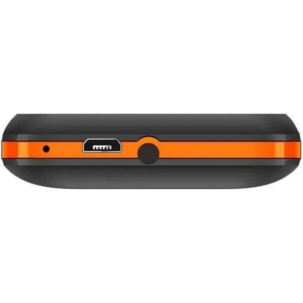 Телефон представлен в стильных оранжевом и черном цветах, подчеркивающих его современный дизайн. При этом устройство имеет моноблочный корпус, что гарантирует его прочность и надежность в повседневной эксплуатации.