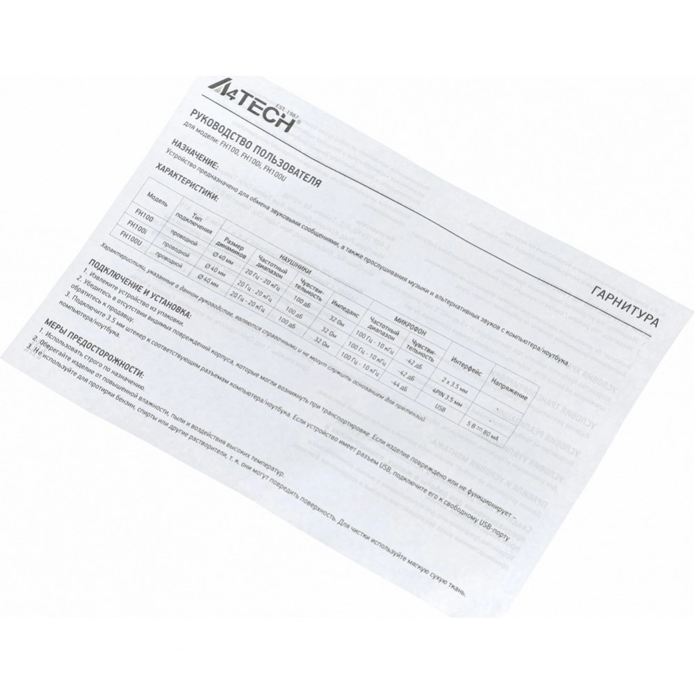 Описание товара Наушники A4Tech Fstyler FH100U черный