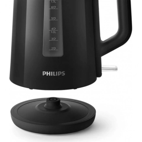 Электрочайник Philips HD9318/20 ? это функциональный прибор, обладающий стильным дизайном и элементами, которые обеспечивают его комфортную эксплуатацию. Мощность прибора достигает 2200 Вт, что позволяет ему за считанные минуты доводить воду до состояния кипения. На одной из сторон корпуса предусмотрена шкала уровня воды, нанесенная на прозрачное вертикальное окошко. Дополнительно на шкале присутствует указание количества чашек, для приготовления которых будет достаточно воды, содержащейся в чайнике. Объем внутренней колбы соответствует 1.7 л. Конструкция Philips HD9318/20 предполагает закрытый элемент нагрева, что позволило производителю сделать плоское дно, защитив элемент от контакта с водой и образования накипи. Чайник представлен в черном пластиковом корпусе с удобным носиком. Гибкий нейлоновый фильтр, помещенный в носик, защищает от попадания накипи в чашку. Фильтр легко вынимается для очистки от скопления частиц накипи. От выкипания воды устройство защищает автоматическое отключение после закипания воды.