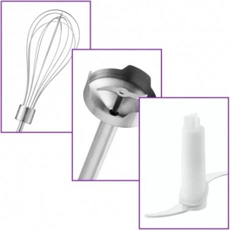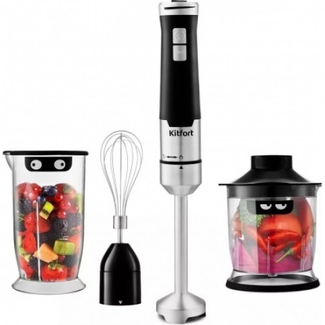 Погружной блендер КТ-3053 – универсальное кухонное устройство, с которым вы сможете приготовить множество блюд! Подходит для смешивания, измельчения, взбивания, замеса жидкого теста, для приготовления супов-пюре, соусов, крема, смузи, молочных коктейлей. Прибор Kitfort КТ-3053 может выполнять функции измельчителя, погружного блендера, а также в комплекте есть венчик для взбивания. С помощью измельчителя можно быстро измельчить мясо, твёрдый сыр, овощи, травы, чеснок, ягоды и многое другое на ваш вкус!