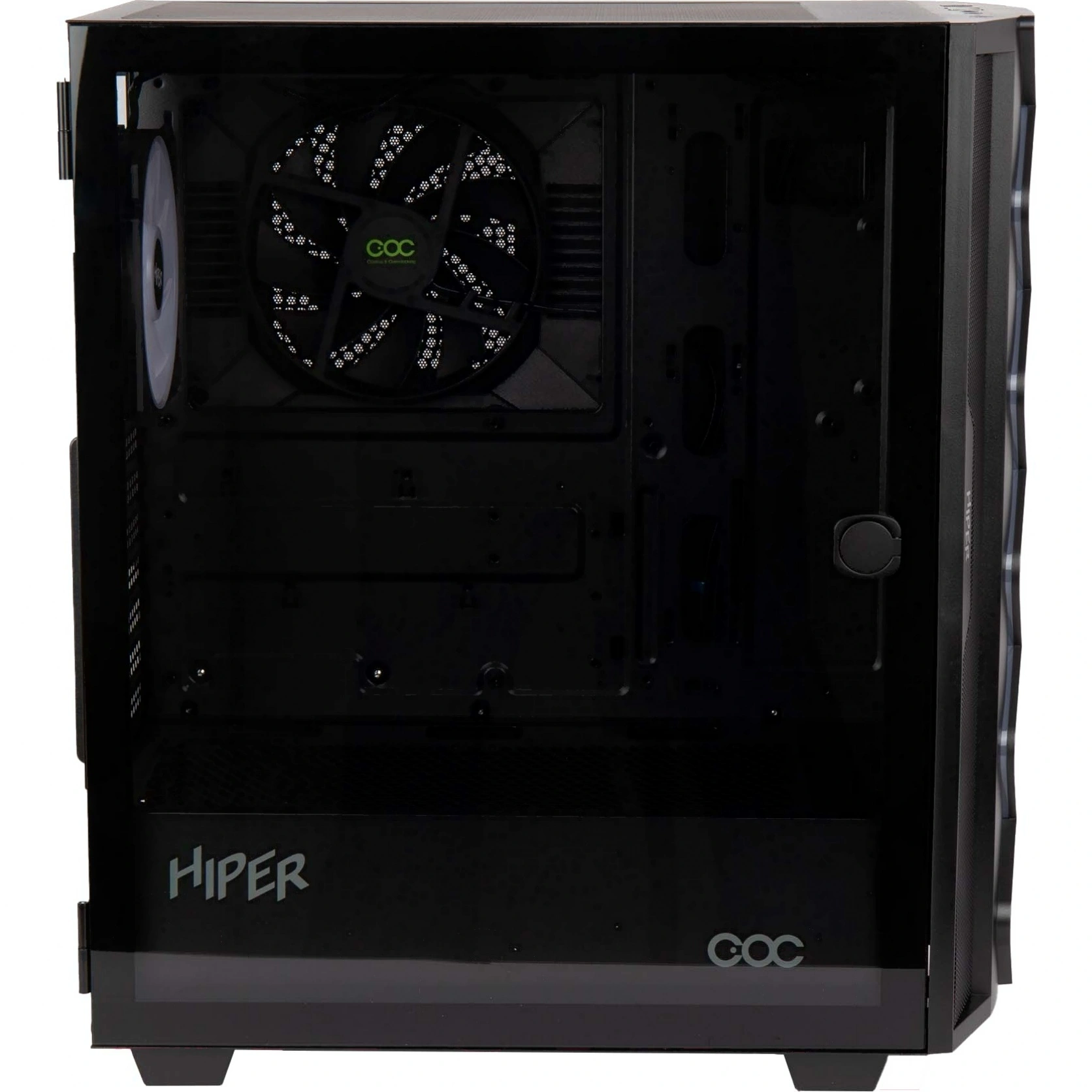 Корпус ATX HIPER DCB изготовлен из стали толщиной 0,5 мм и отличается большой вместительностью. Для установки плат расширения предусмотрены 7 слотов, есть место для крепления дополнительных 7-8 вентиляторов, в зависимости от их диаметра. Корпус соответствует типоразмеру Midi-Tower, что позволяет установить материнскую плату форм-фактора Standard-ATX. Блок питания устанавливается в нижней части корпуса, что улучшает циркуляцию воздуха.