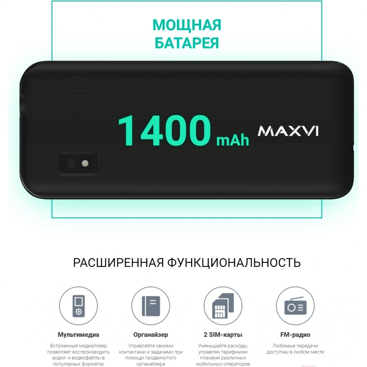 Maxvi K21 – телефон в классическом дизайне с экраном 2,4”, двумя SIM-картами, удобной клавиатурой, аккумуляторной батареей 1400 mAh и ярким фонариком. Maxvi K21 незаменим для комфортного и продолжительного общения!