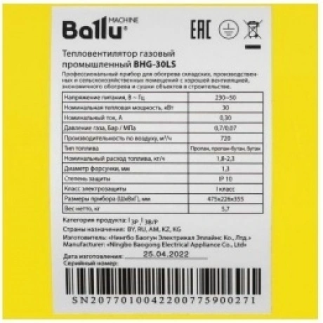 Отзывы о товаре Пушка тепловая газовая Ballu BHG-30LS