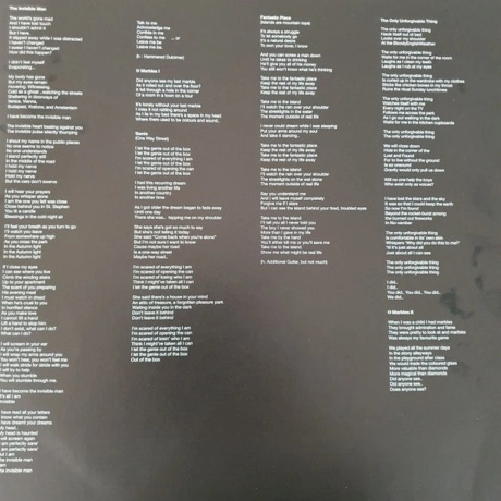 The Invisible Man, Marbles I, Genie, Fantastic Place, The Only Unforgivable Thing, Marbles II, Ocean Cloud, Marbles III, The Damage, Dont Hurt Yourself, Youre Gone, E1 Angelina, E2 Drilling Holes, F1 Marbles IV, F2 Neverland