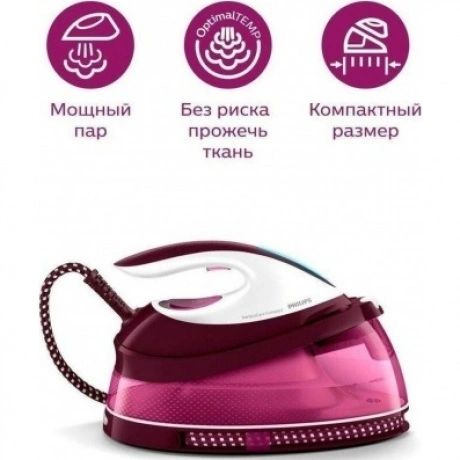 Благодаря мощной постоянной подаче пара обеспечивается быстрое глажение, а наша технология OptimalTEMP избавляет от необходимости регулировки температуры. Компактная конструкция и небольшой вес для простого использования и хранения.