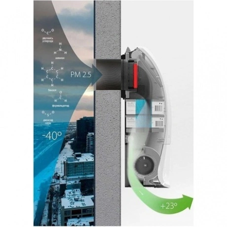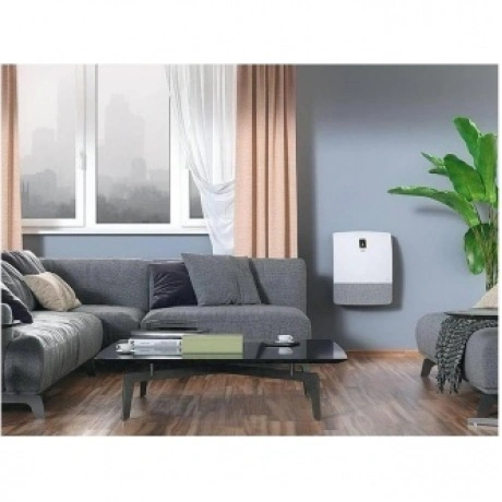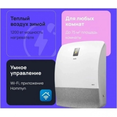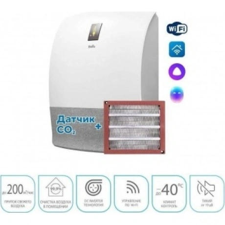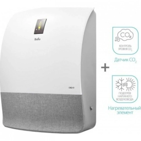 Ballu ONEAIR ASP-200SMAX – инверторный приточный очиститель воздуха с интеллектом. Передняя панель корпуса покрыта стильной и технологичной тканью, которая будет сочетаться с любым дизайнерским решением в вашем помещении. Предназначен для подачи свежего и очищенного воздуха в любые жилые помещения площадью до 75 кв.м. В комплекте высокоэффективный керамический нагревательный элемент мощностью 1200 Вт, который подогревает входящий воздух. При этом прибор эффективно работает в осенне-зимний период при температуре наружного воздуха до -40°С. Профессиональная система очистки воздуха, состоящая из 6 ступеней, устраняет 99.9% загрязнений в воздухе, поглощает неприятные запахи, обеззараживает от вирусов и бактерий. В приборе есть арома-капсула для масел, позволяющая создать индивидуальную атмосферу на любой вкус. Встроенный датчик РМ2.5 в зависимости от качества воздуха автоматически управляет интенсивностью очистки в режиме циркуляции. Датчик CO2 (в комплекте) контролирует уровень углекислого газа в помещении и автоматически управляет клапаном притока, поддерживая оптимальный уровень CO2. Прибор имеет удобный интерфейс, который обеспечивают цветной дисплей и полифонический звуковой сигнал, встроенный Wi-Fi модуль для удаленного управления прибора с мобильных устройств, пульт ДУ в комплекте.