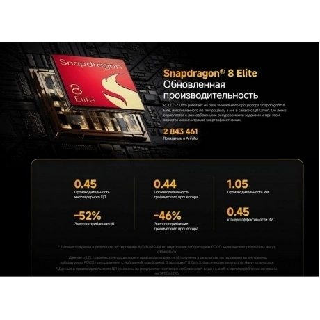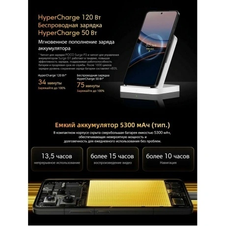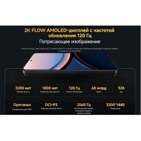 POCO F7 Ultra — это мощный и стильный смартфон с большим экраном и высоким разрешением. Устройство оснащено ярким и четким AMOLED дисплеем с диагональю 6.67 дюйма и разрешением 3200x1440 пикселей, который обеспечивает отличное качество изображения и комфортное использование. Смартфон работает на базе операционной системы Android 14 с фирменной оболочкой HyperOS 2, которая предлагает удобный и интуитивно понятный интерфейс. POCO F7 Ultra оснащен мощным процессором Snapdragon 8 Elite, что обеспечивает быструю и плавную работу устройства. Смартфон также имеет большой объем оперативной памяти, что позволяет ему легко справляться с многозадачностью и запускать требовательные приложения. Тройная основная камера с оптической стабилизацией позволяет делать качественные и яркие фотографии и видео. Устройство также поддерживает функции искусственного интеллекта, которые помогают улучшить качество изображений и видео. Смартфон имеет емкий аккумулятор на 5300 мАч, что обеспечивает длительное время работы без подзарядки. POCO F7 Ultra также поддерживает быструю зарядку мощностью 120 Вт, что позволяет быстро восстановить заряд батареи.