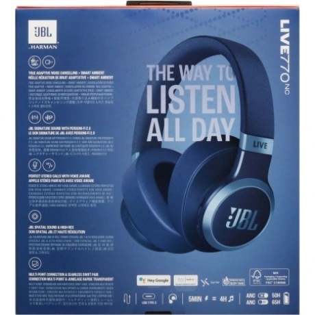Наушники JBL Live 770NC обеспечивают мощный фирменный звук JBL в удобном и стильном оголовье полноразмерных наушников. Когда вы погружаетесь в свой мир музыки, полное адаптивное шумоподавление с технологией Smart Ambient позволяет не отвлекаться на посторонние звуки. Или вы захотите слышать, что происходит вокруг, продолжая слушать свой любимый плейлист или даже вести беседу, не снимая наушников. Вы можете легко получить доступ к любимому голосовому помощнику по команде или одним касанием чашки наушника, чтобы воспроизвести любимый плейлист, отправить сообщение своему другу, проверить погоду и многое другое. Вы сможете наслаждаться потоковой передачей музыки в течение 65 часов (50 часов с включенными Bluetooth и адаптивным шумоподавлением). Хотите большегоx 5-минутная зарядка обеспечивает дополнительные 4 часа работы наушников. JBL Live 770NC подключается к двум устройствам Bluetooth одновременно, поэтому вы никогда не пропустите вызов, даже во время просмотра видео на вашем планшетном устройстве.