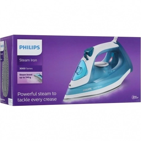 Утюг Philips DST3011/20 представлен в эргономичном синем корпусе с широкой ручкой и классической керамической подошвой. Емкость на 300 мл расширяет возможности прибора, позволяя разбрызгивать воду на пересушенную ткань или отпаривать вещи с использованием парового удара в любом положении. Кабель длиной 1.9 м крепится с помощью шарообразного шарнира.