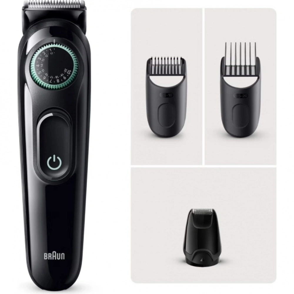 Триммер Braun — это высококачественный прибор, предназначенный для ухода за бородой и усами. Этот триммер от ведущего бренда Braun сочетает в себе стильный черный дизайн и надежную функциональность. Основное преимущество устройства — возможность регулировки длины стрижки от минимальных 0.5 мм до максимальных 20 мм, что позволяет легко подобрать оптимальную длину для любого стиля.