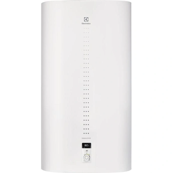 Водонагреватель Electrolux EWH 80 Centurio IQ 3.0 прибор легко разместить даже в тесной ванной: его можно вешать как вертикально, так и горизонтально. Габариты — 89 см в высоту, 55,5 см в ширину и 35 см в глубину. Светлый корпус выглядит аккуратно и не выпадает из современного интерьера. Бак сделан из нержавеющей стали — не ржавеет и служит годами.