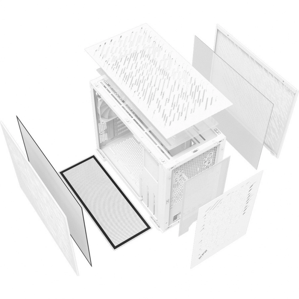 Изготовленный из прочной стали, корпус весит 5,15 кг и обладает элегантным белым цветом, который идеально впишется в современный интерьер. Несмотря на свои компактные размеры, корпус поддерживает форм-факторы материнских плат mini-ITX и mATX, что обеспечивает широкий диапазон совместимых компонентов.