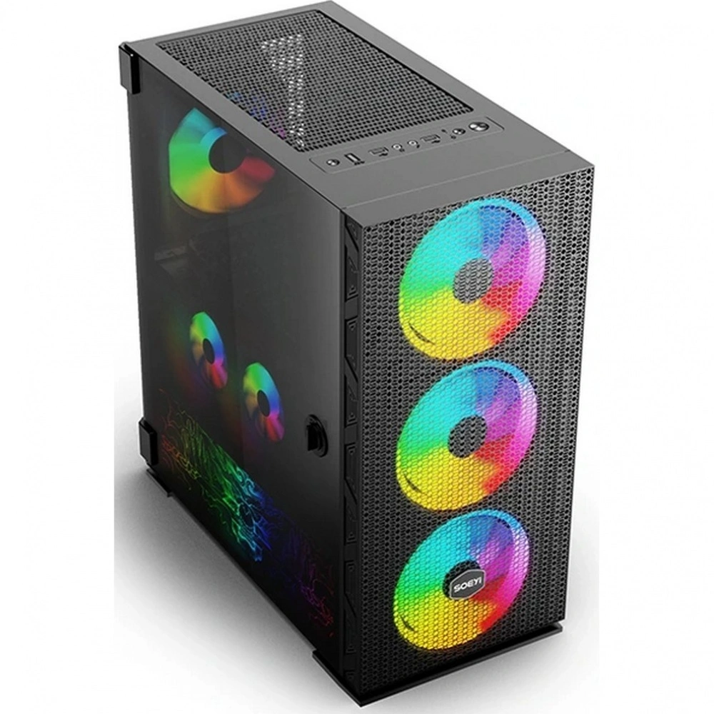 Одной из особенностей данного корпуса является его современный дизайн с окном на боковой стенке, которое позволяет наблюдать за внутренними компонентами системы и демонстрировать яркую ARGB подсветку. Корпус выполнен из сочетания пластика, стали и стекла, что придает ему как прочность, так и стильный внешний вид.