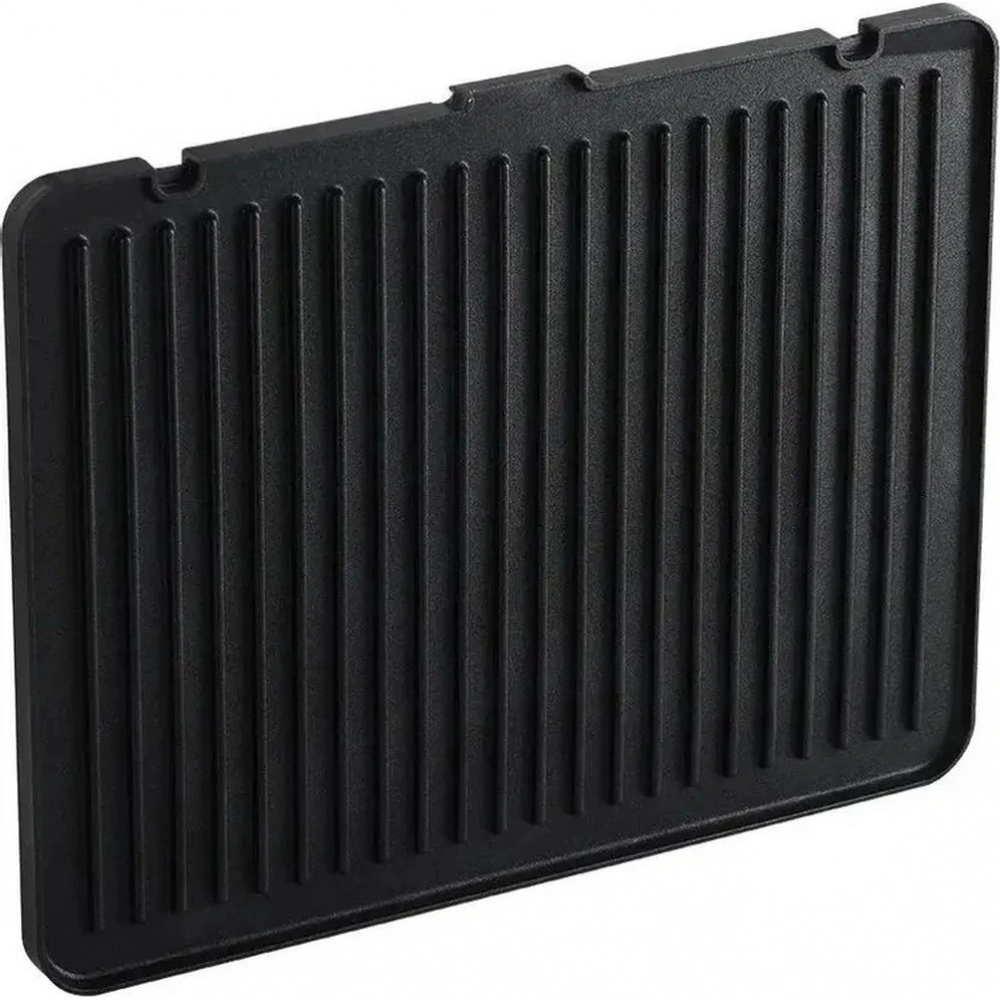 Антипригарное покрытие поверхности гарантирует легкость в уходе и предотвращает пригорание пищи. Удобство использования увеличивается за счет съемных пластин и поддона для жира и сока, что облегчает процесс чистки. Закрытый нагревательный элемент обеспечивает равномерное распределение тепла по всей рабочей поверхности.
