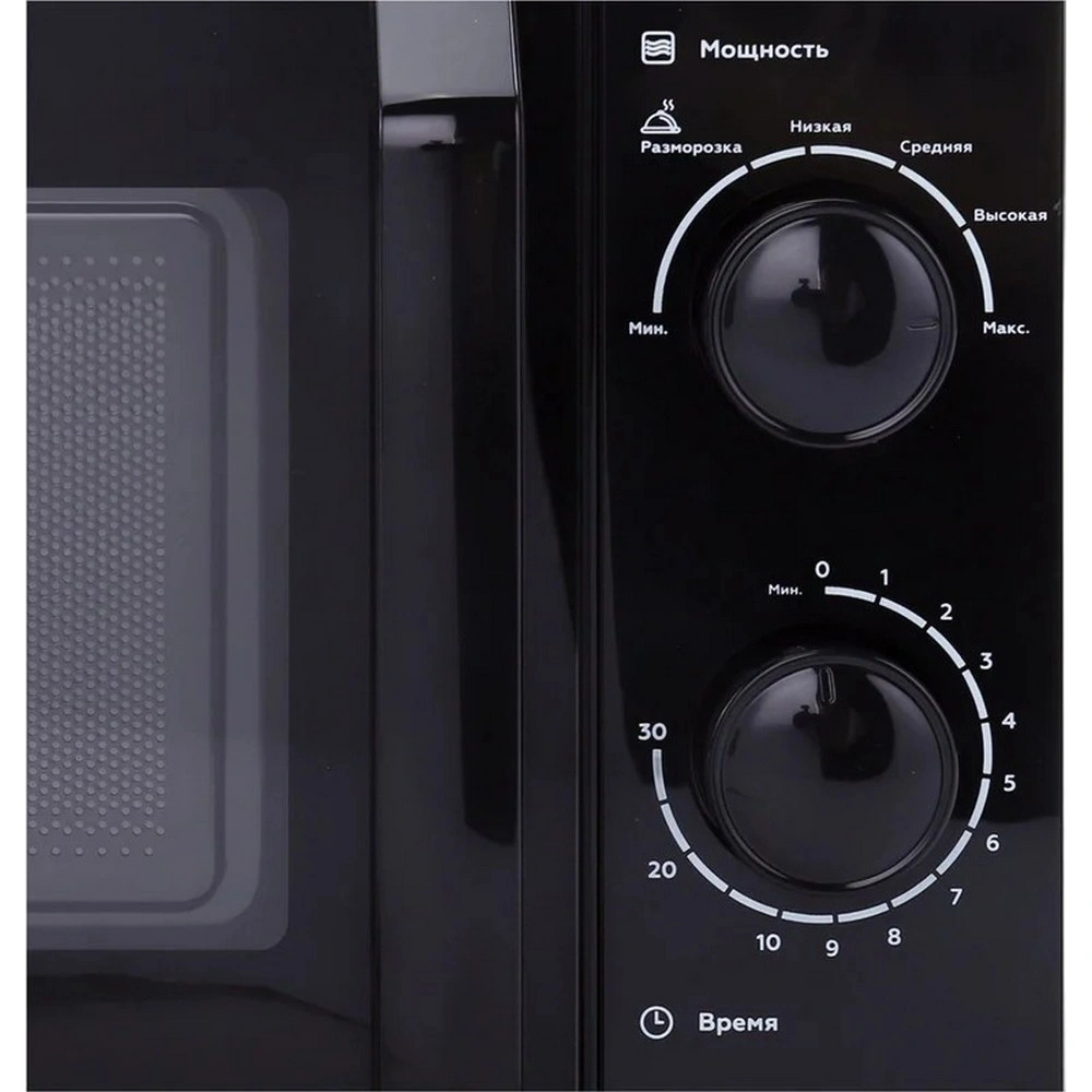 Простое механическое управление осуществляется с помощью поворотных переключателей. С их помощью вы можете переключить режим мощности или таймера. В микроволновой печи установлено 6 режимов мощности, благодаря которым вы с легкостью подберете самый подходящий для ваших любимых блюд.