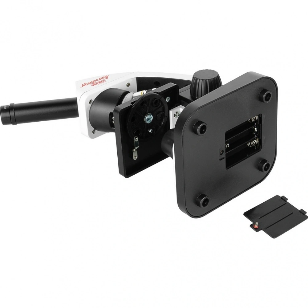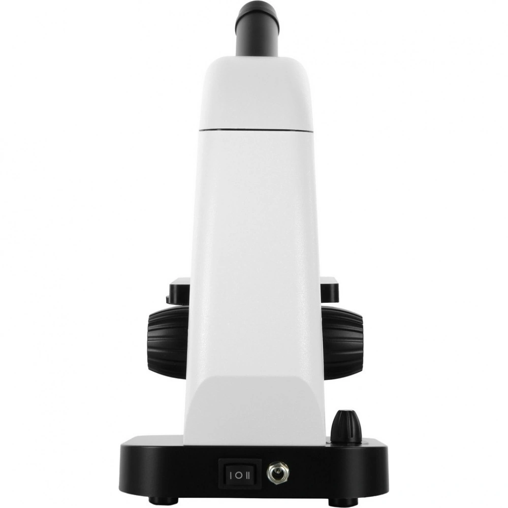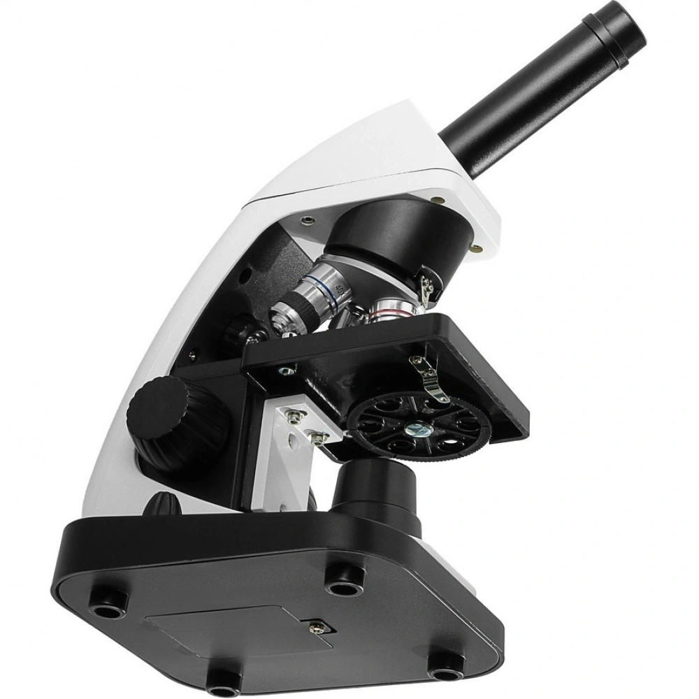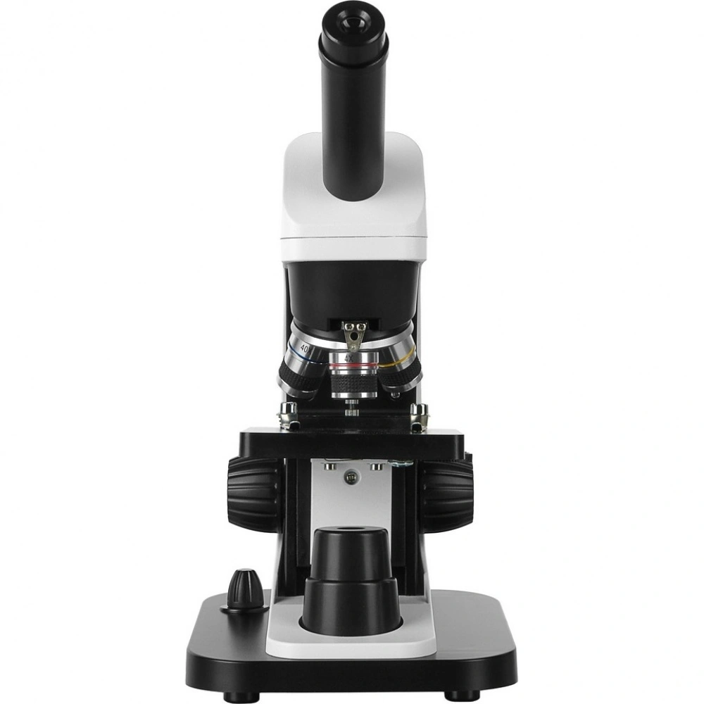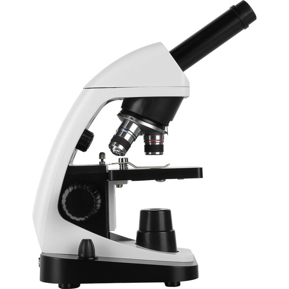 Монокулярный учебный биологический микроскоп для исследований в проходящем и отраженном свете. Увеличение 40х – 1600х. Объективы с ахроматической коррекцией. Револьверное устройство на 3 объектива. Механизм тонкой фокусировки. Два осветителя на светодиодах.