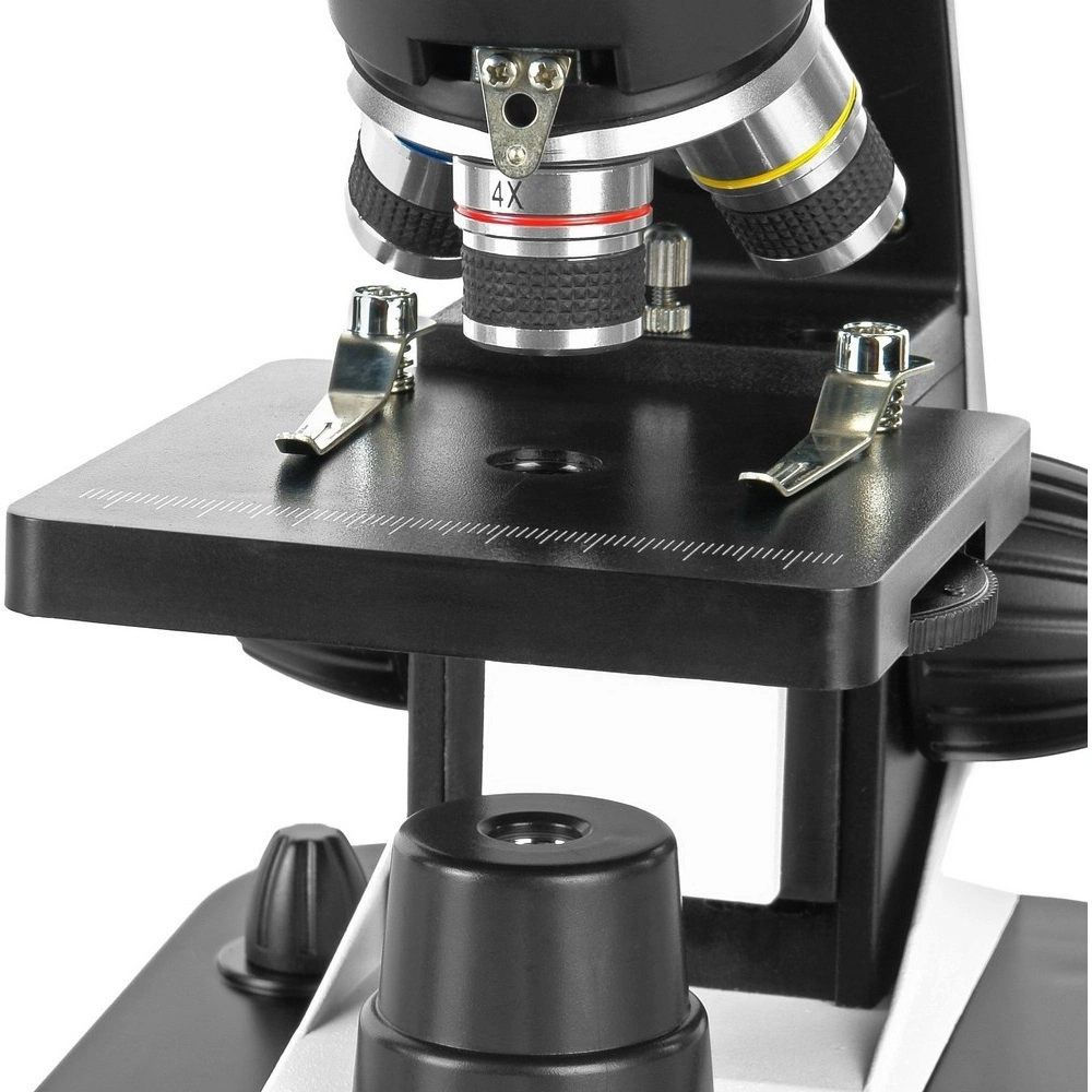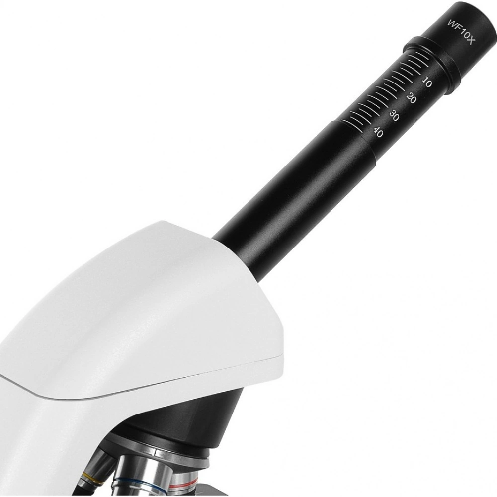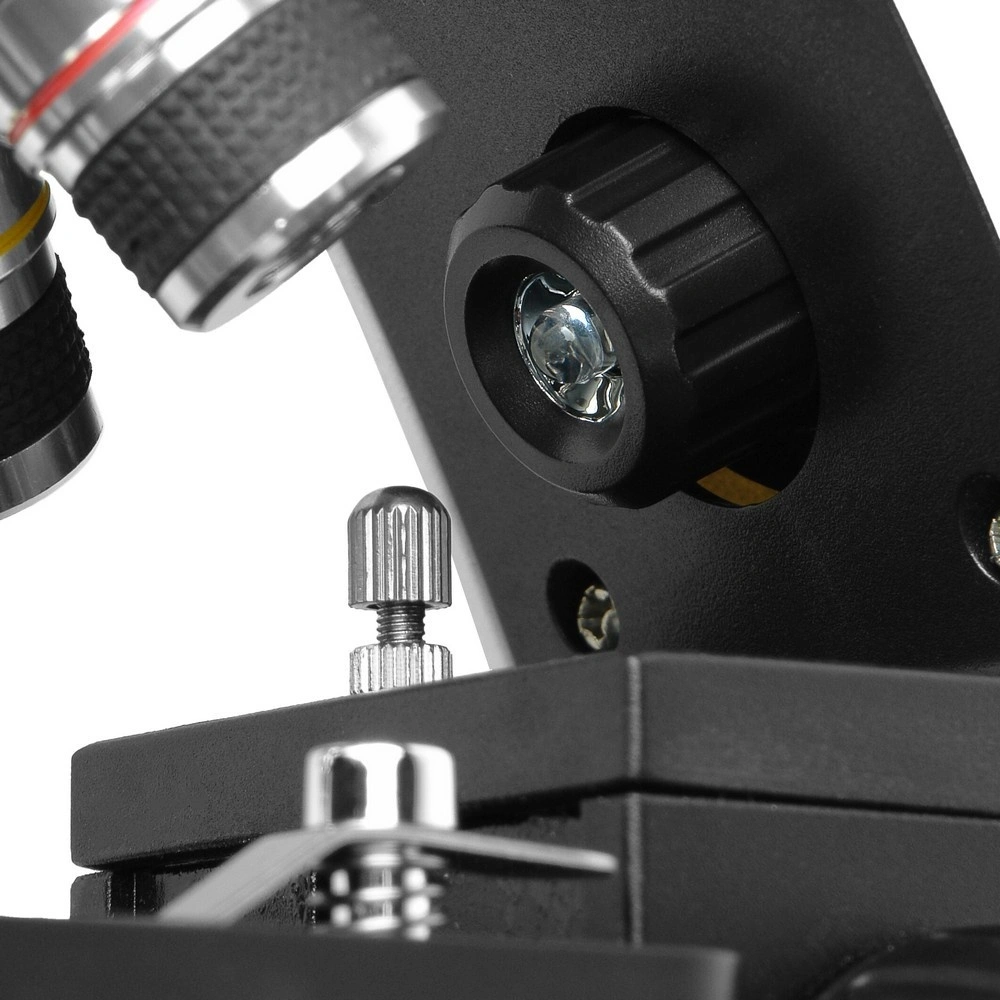 В комплекте микроскопа окуляры широкого поля WF10х, WF16х и WF20х с ними увеличение микроскопа составляет 400х и 800х, а при использовании линзы Барлоу и объектива 40х до 1600х.