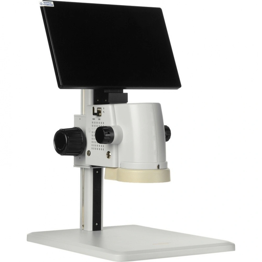 В оптическую головку интегрирован 5 Мр CMOS сенсор Sony формата 1/2.8 дюйма. Это позволяет исследовать на мониторе и записывать резкие изображения и видео 1920?1080 с частотой 60 к/с при общем увеличении микроскопа от 17х до 110х. Данные могут быть переданы по кабелю HDMI на внешнее устройство для просмотра и записи или могут быть записаны непосредственно с микроскопа на карту micro-CD.