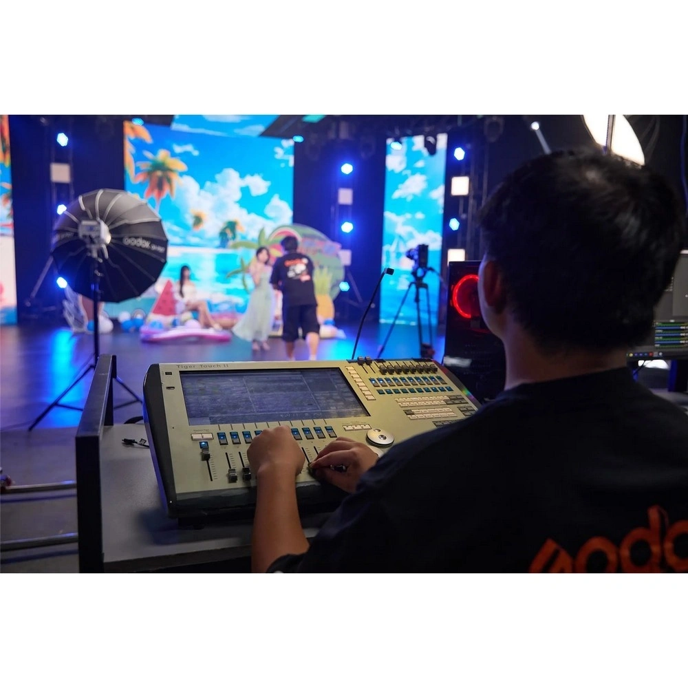 Godox LITEMONS LE300Bi — это биколорный светодиодный осветитель мощностью 320 Вт с питанием от сети 100-240 В. Прибор характеризуется высоким световым потоком, регулируемой цветовой температурой от 2800K до 6500K и исключительными индексами цветопередачи (CRI/TLCI ?98). Оснащен встроенным блоком питания, интеллектуальной системой охлаждения и байонетом Bowens для установки светоформирующих насадок. Управление возможно как с панели на корпусе, так и дистанционно через Bluetooth, DMX512 или CRMX (опция).