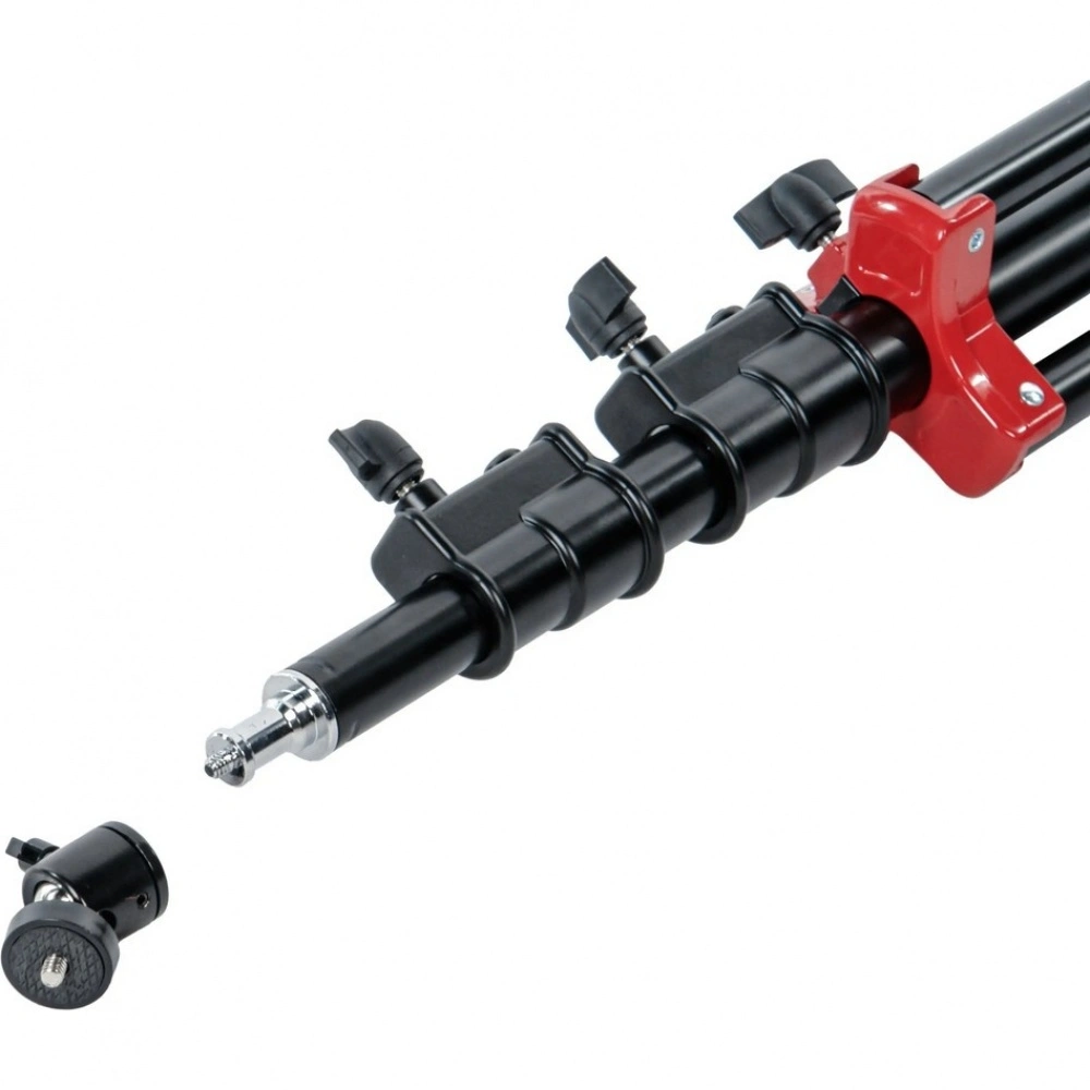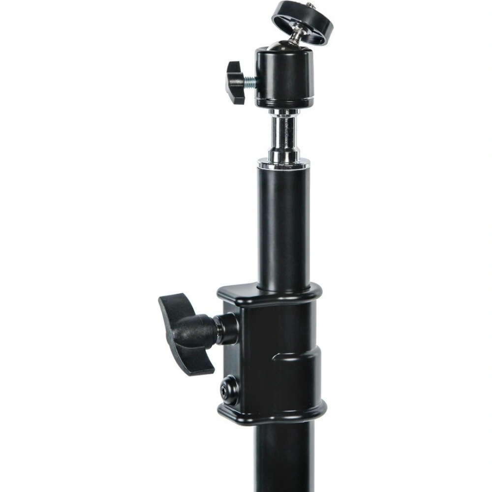 Фото- или видеокамеру можно установить на стойку с помощью универсального несъемного адаптера диаметром 5/8 дюйма (16 мм) с резьбовым соединением 1/4 дюйма. Для регулировки угла съемки используется шаровая мини-головка, позволяющая быстро настраивать наклон установленного оборудования и выбирать оптимальный ракурс.
