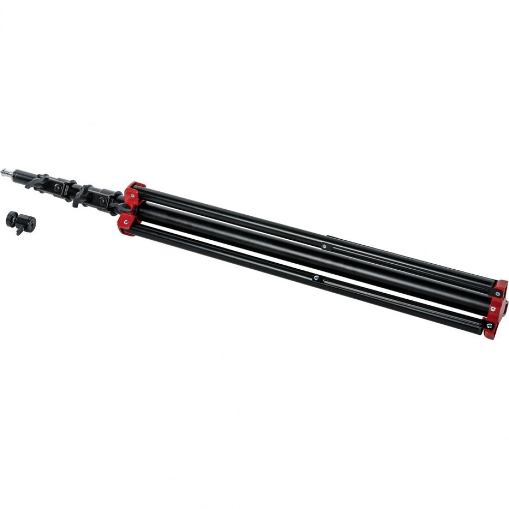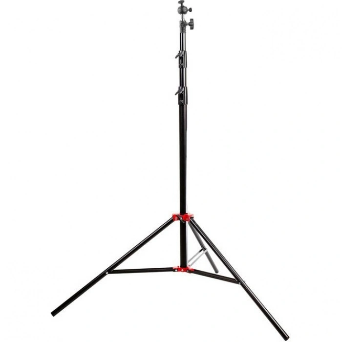 Основание стойки представляет собой складную треногу с винтовым фиксатором. Максимальный размах ножек достигает 110 см, обеспечивая надежную опору для крепления оборудования. Ножки стойки стабилизированы специальной алюминиевой растяжкой, повышающей общую устойчивость конструкции. При съемке в сложных условиях можно закрепить на основании стойки дополнительный груз, например, мешок Falcon Eyes SP-BG11, заполненный песком.