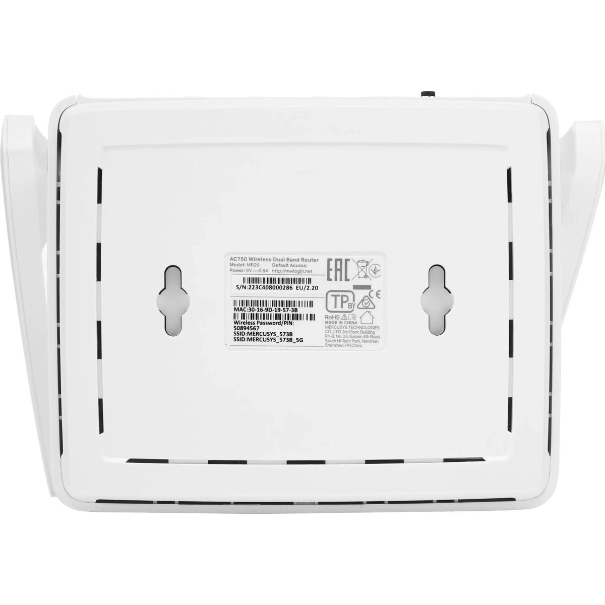 Wi-Fi роутер Mercusys MR20 выделяется оформлением в белом корпусе компактных размеров и двумя внешними антеннами. Устройство предусматривает функционирование в режимах точки доступа, усилителя и роутера. Поддержка двух частотных диапазонов и стандарт 802.11ac обеспечивают стабильное соединение с Интернетом при скорости обмена данными до 750 Мбит/с.