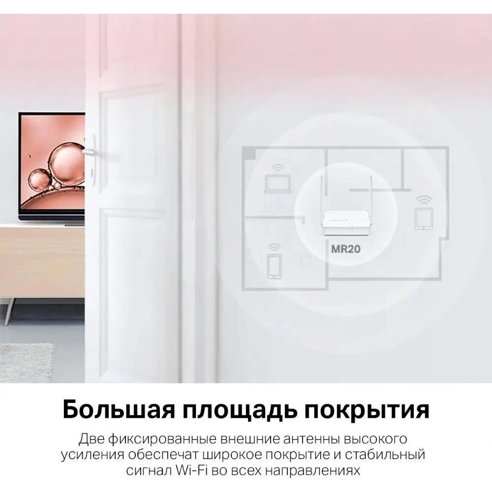 Фиксированные антенны формируют широкую зону покрытия внутри помещения. Функция родительского контроля позволяет ограничивать время проведения в Интернете для детей и блокировать доступ к нежелательным ресурсам. Веб-интерфейс гарантирует простую настройку подключения роутера Mercusys MR20.