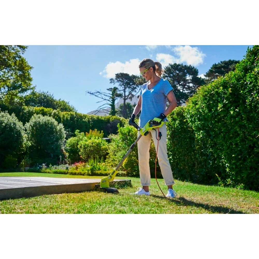 Электрический триммер Ryobi RLT5127 5133003639 используется для скашивания травы и подравнивания кромки газона. Защитный кожух оберегает цветы и прочие предметы от повреждений. Телескопическая штанга позволяет подбирать оптимальную длину в зависимости от роста оператора. Угол наклона двигателя можно регулировать.