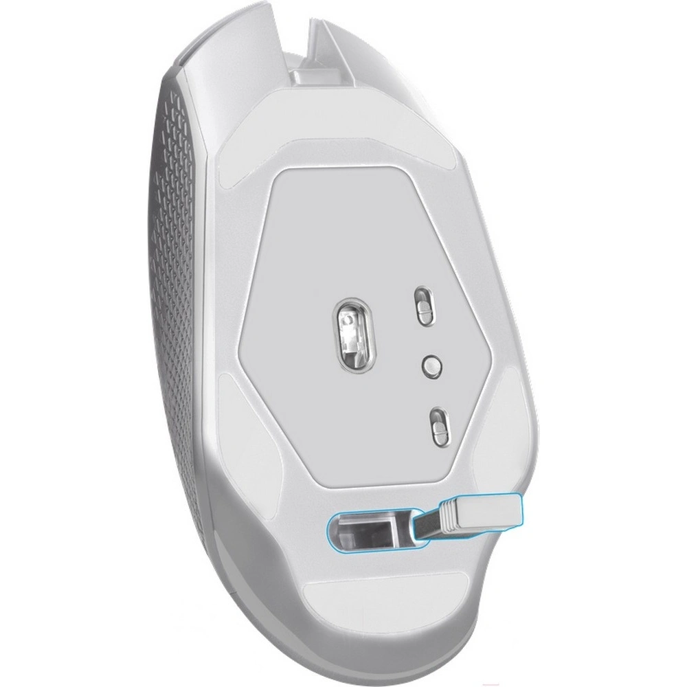 Мышь имеет эргономичный дизайн, адаптированный для правой руки, что обеспечивает комфортное использование даже в течение длительного времени. Белый цвет придаёт устройству элегантный и современный вид.