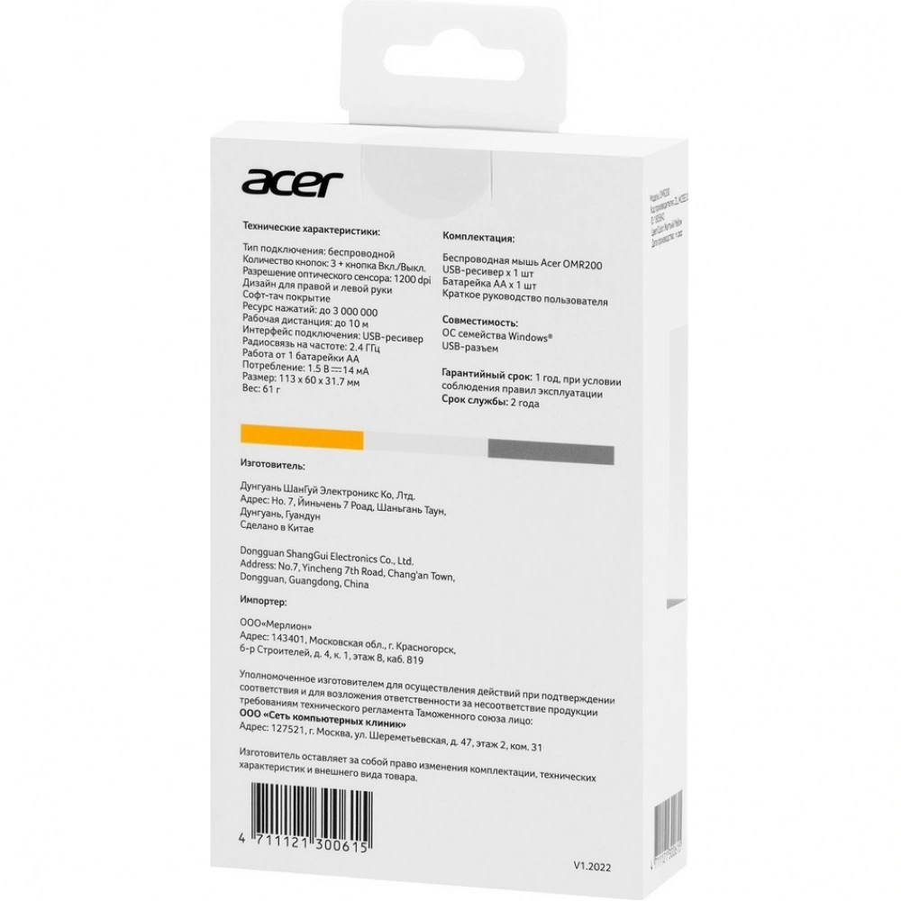 Отзывы о товаре Мышь Acer OMR200 белый/желтый (ZL.MCEEE.020)