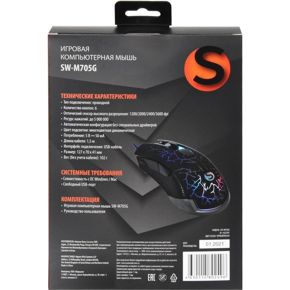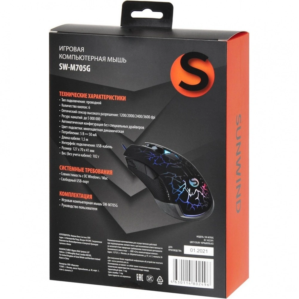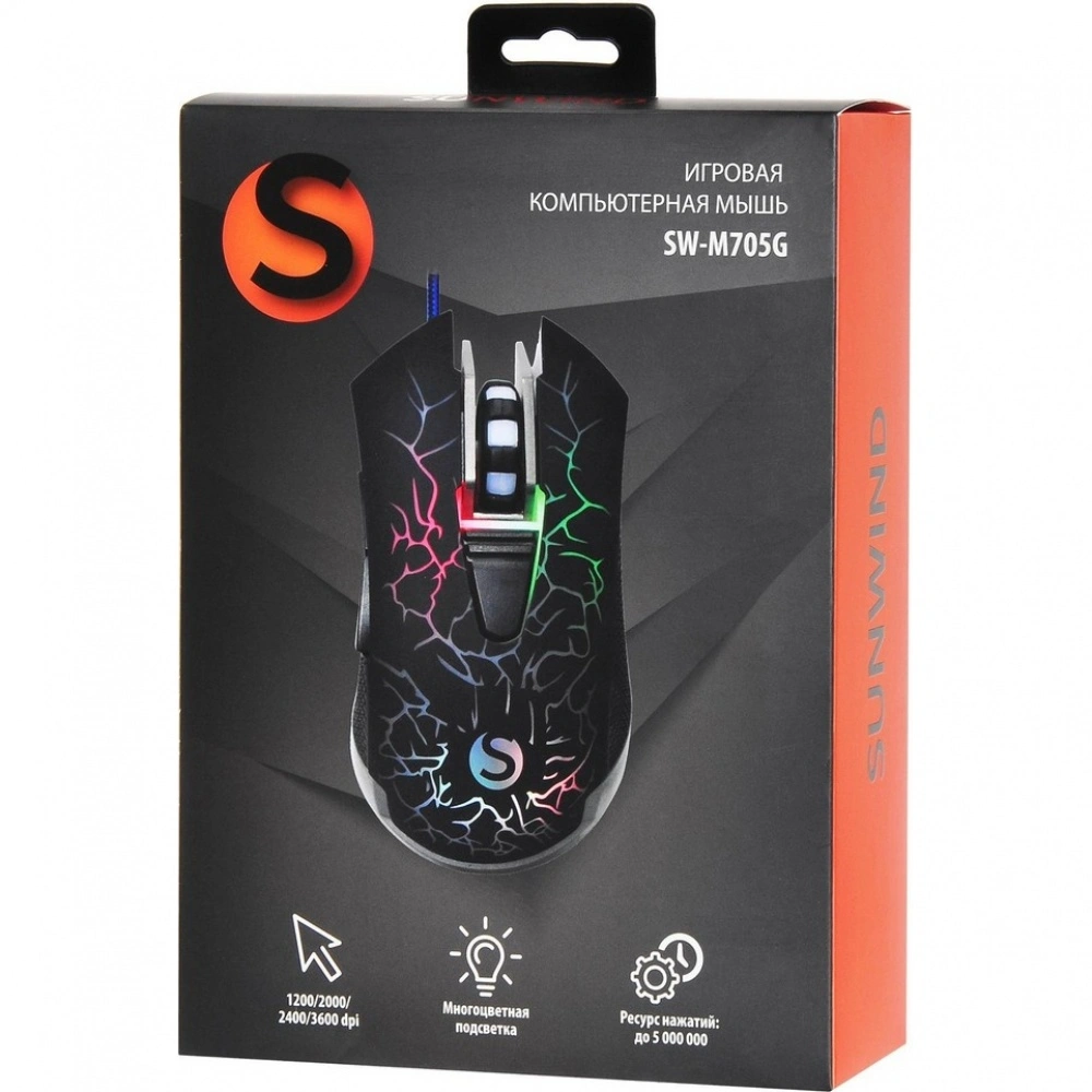 С проводным подключением длиной 1.5 метра вы можете быть уверены в стабильной связи и быстром отклике, что особенно важно в динамичных играх. Оснащена оптическим сенсором с разрешением 3600 dpi, мышь SunWind позволяет максимально точно управлять курсором и адаптироваться к различным игровым ситуациям.