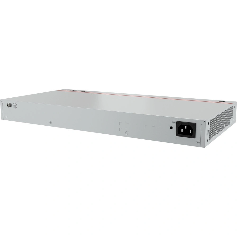 - **Количество портов:** 4 порта SFP для оптоволоконных соединений и 28 портов RJ45 для подключения стандартных Ethernet кабелей. Максимальная скорость передачи данных через эти порты составляет 10/100/1000 Мбит/сек.