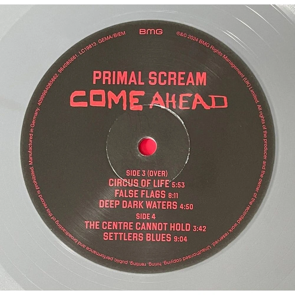 «Come Ahead» — 12-й альбом шотландской рок-группы Primal Scream. 11 новых песен, среди которых основатель и бессменный вокалист группы Бобби Гиллеспи готовится выпустить некоторые из самых личных песен в карьере. Издание на серебристом виниле. Процесс написания песен для «Come Ahead» начался в 2019 году, когда Бобби Гиллеспи понятия не имел, будет ли он записывать еще один альбом Primal Scream. Впервые текст предшествовал музыке, позволяя повествованию занять центральное место. Гиллеспи написал песни соло с акустической гитарой, испытывая быстрые всплески вдохновения. Такой подход в сочетании с поддержкой продюсера Дэвида Холмса привел к новому творческому направлению. В сотрудничестве с Холмсом и гитаристом Primal Scream Эндрю Иннесом альбом был завершен в Белфасте, Лондоне и Лос-Анджелесе. Гиллеспи прямо не указывает на всеобъемлющую концепцию альбома, но конфликт, как внутренний, так и внешний, является повторяющейся темой во всех треках. Это также отражено в названии альбома «Come Ahead», агрессивность и уверенность чувствуются на новом альбоме Primal Scream.